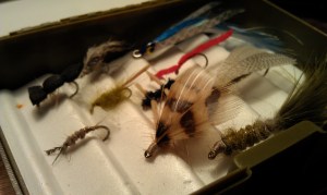 A few new flies, which I’ve never tied before, joined the box: a scud, a beetle, and a spider (it looks like crap). I think the spider fly is the most unimpressive fly I’ve tied so far, and nothing about it turned out the way I wanted it to. Plus, I didn’t have any good material for the legs so I improvised and give it cankles.